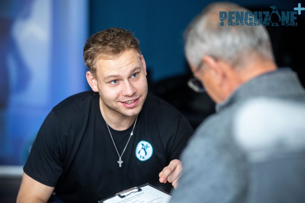 Bei deinem ersten Besuch bitten wir dich, einen Fragebogen zu deinen Zielen und Gesundheitsdaten auszufüllen, plane dafür bitte etwa 10 Minuten extra ein. Dann erklären wir dir den Ablauf des PenguBox-Besuches und zeigen dir die Umkleidekabinen. In unserer Kältekammer verbringst du dann exakt 3 Minuten. Im Anschluss ziehst du dich an und bist sofort startklar für deinen weiteren Tag. Kurzum bedeutet das: beim ersten Besuch 20 Minuten, danach 10 Minuten!